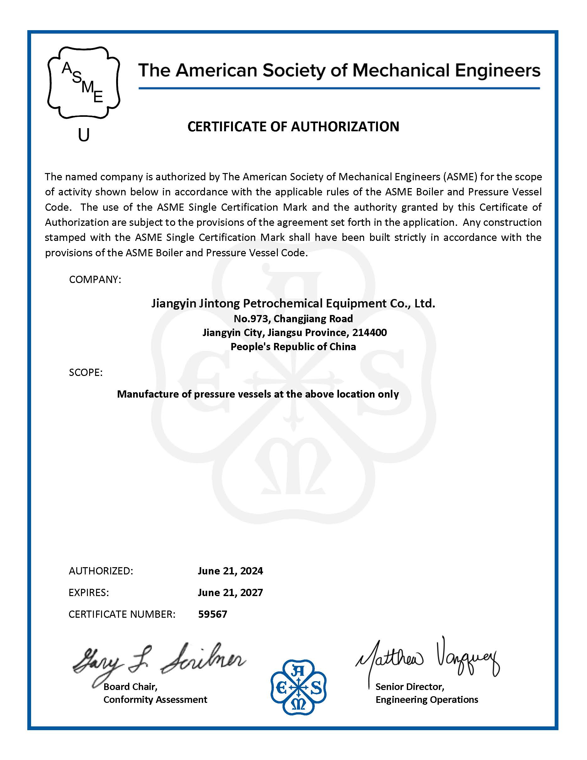 企業資信等級為AAA,是江蘇省國家高新技術企業。公司自1996年起開始按ISO9000要求建立質量管理體系,于1998年獲得質量管理體系認證。并具有特種設備壓力容器規則設計許可資質、大型高壓容器A1和超高壓容器A6制造許可資質,壓力管道元件A、B級制造資質,江蘇省節能型熱交換成套裝備工程技術研究中心、無錫市金屬管道配件工程技術研究中心。