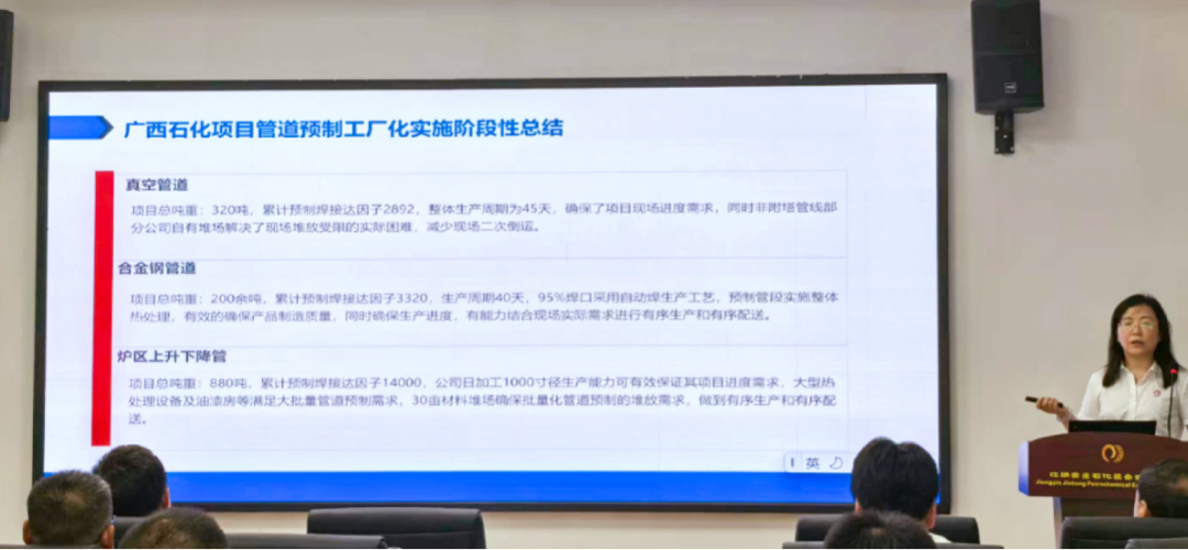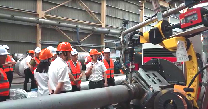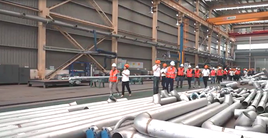 下午與會人員參觀了金童裝備公司的管道預制自動化生產線和二期新石化高端裝備研發和制造項目建設工地,并對中石油廣西乙烯項目在制的合金鋼預制管道進行了材料追溯審核和質量控制的檢查和交流。
