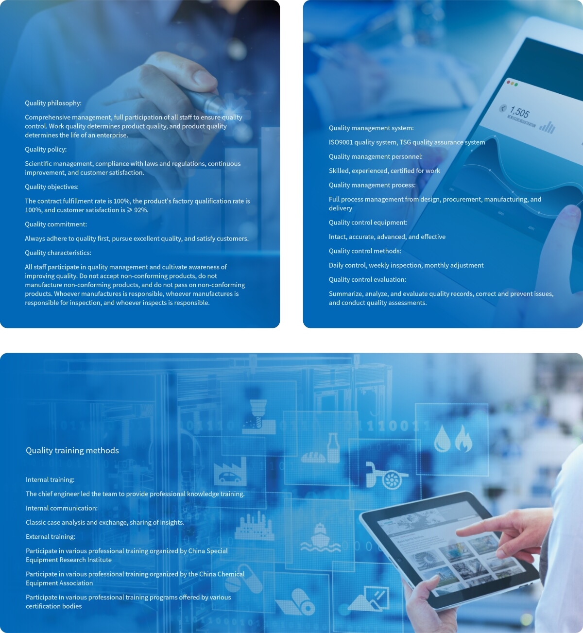 With the annual production capacity of 20,000 tons of pressure vessels/heat exchangers (single heat exchange area below 15,000 square meters) and 4 million pieces of pressure pipeline components.